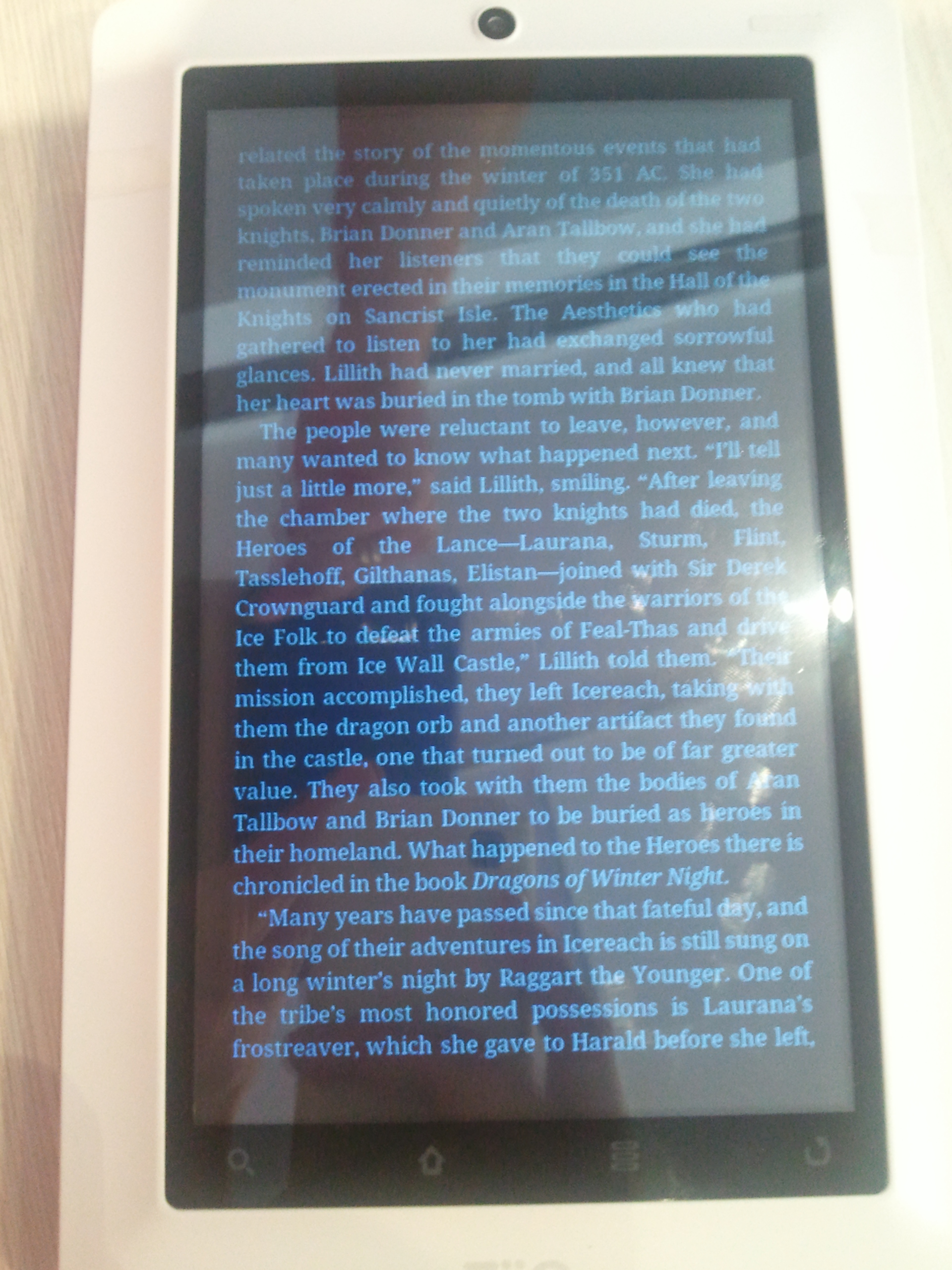 Having used Kindle for a while, I naturally tend to compare ZiiO with the former, as an e-reader. ZiiO, with its weight almost twice that of the Kindle 3 (400g vs 241g), definitely feels heavy if one were to read over a prolong period of time. For a quick read, I would think it is definitely capable. What I was impressed is ZiiO’s night mode feature, which not only dim the backlit display, but also also toggle the display foreground and background color, so that the screen would not be too glaring. Although it can’t beat e-ink technology, the night mode feature is the most welcome feature, if you always like to read at night.